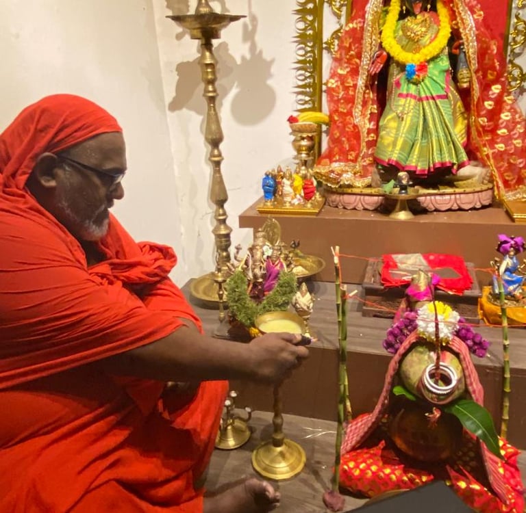 Devotional items associated with Dakshina Kali worship typically include a variety of ritual essentials designed to honor the goddess and facilitate proper sadhana. Kali yantras and talismans are commonly sold to aid practitioners in meditation and spiritual focus. Mantra books and stotra collections, such as the revered Karpuradi Stotram, provide the sacred verses necessary for chanting and invoking the goddess's power. Puja items available include incense sticks, oil lamps (diyas), fresh flowers—especially red hibiscus, which is Kali’s favorite—and symbolic implements like bells, conch shells, and sword replicas, all integral to performing traditional worship. Additionally, sacred ash (vibhuti) or practice ash used in rituals is commonly offered for sale, supporting deeper tantric rites. All our developmental activities and the website's upkeep are funded through the sale of these devotional products, helping to sustain and expand the Dakshina Kali spiritual community